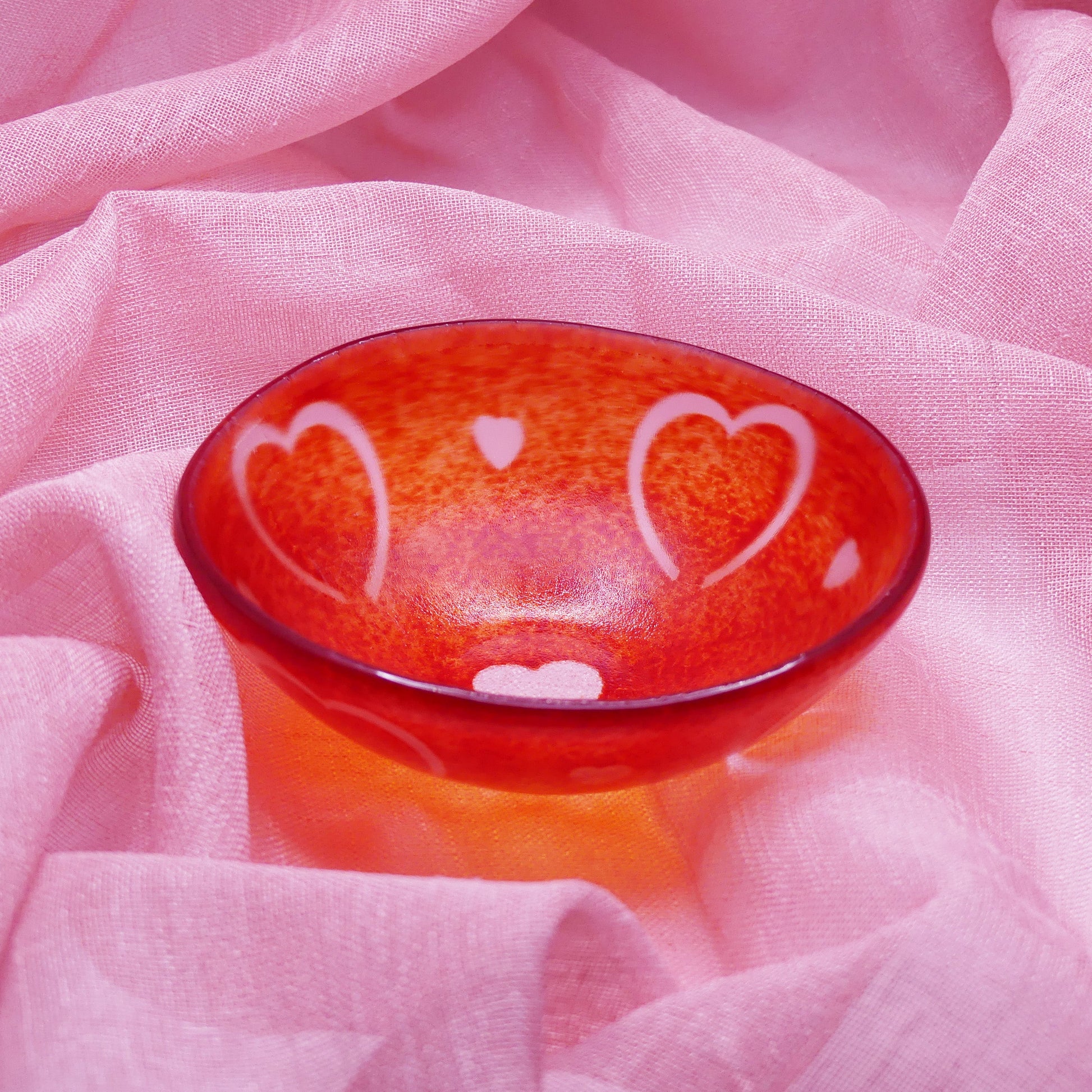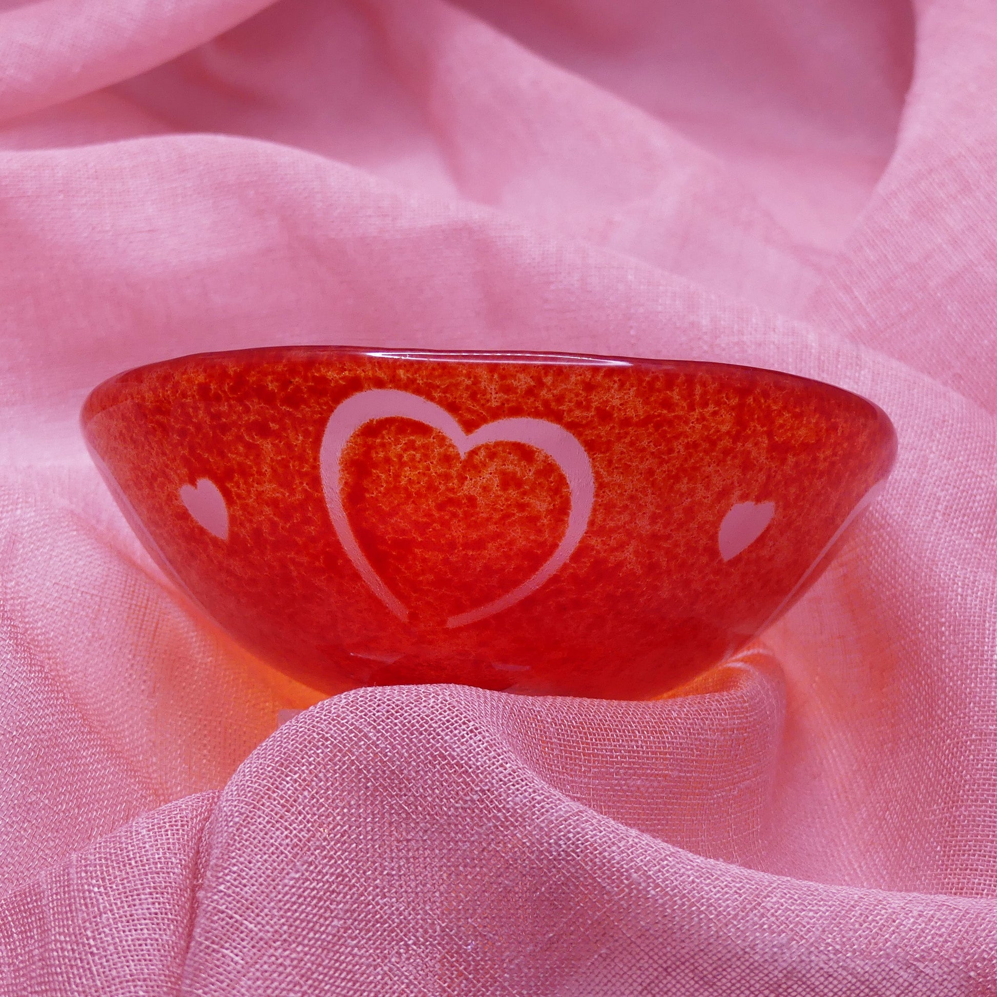 Chaque bol est réalisé à partir d’une plaque de verre, puis décoré avec des poudres de verre colorées, appliquées manuellement.