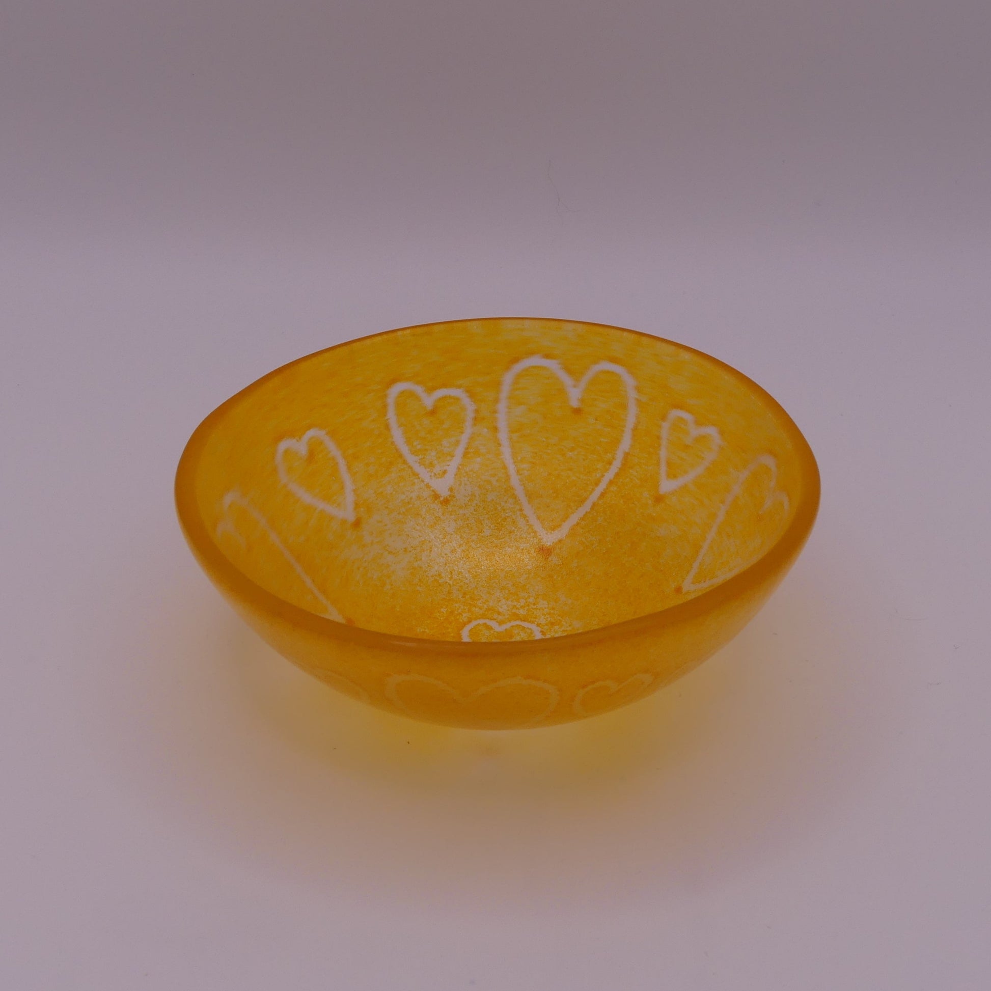 Chaque bol est réalisé à partir d’une plaque de verre, puis décoré avec des poudres de verre colorées, appliquées manuellement.