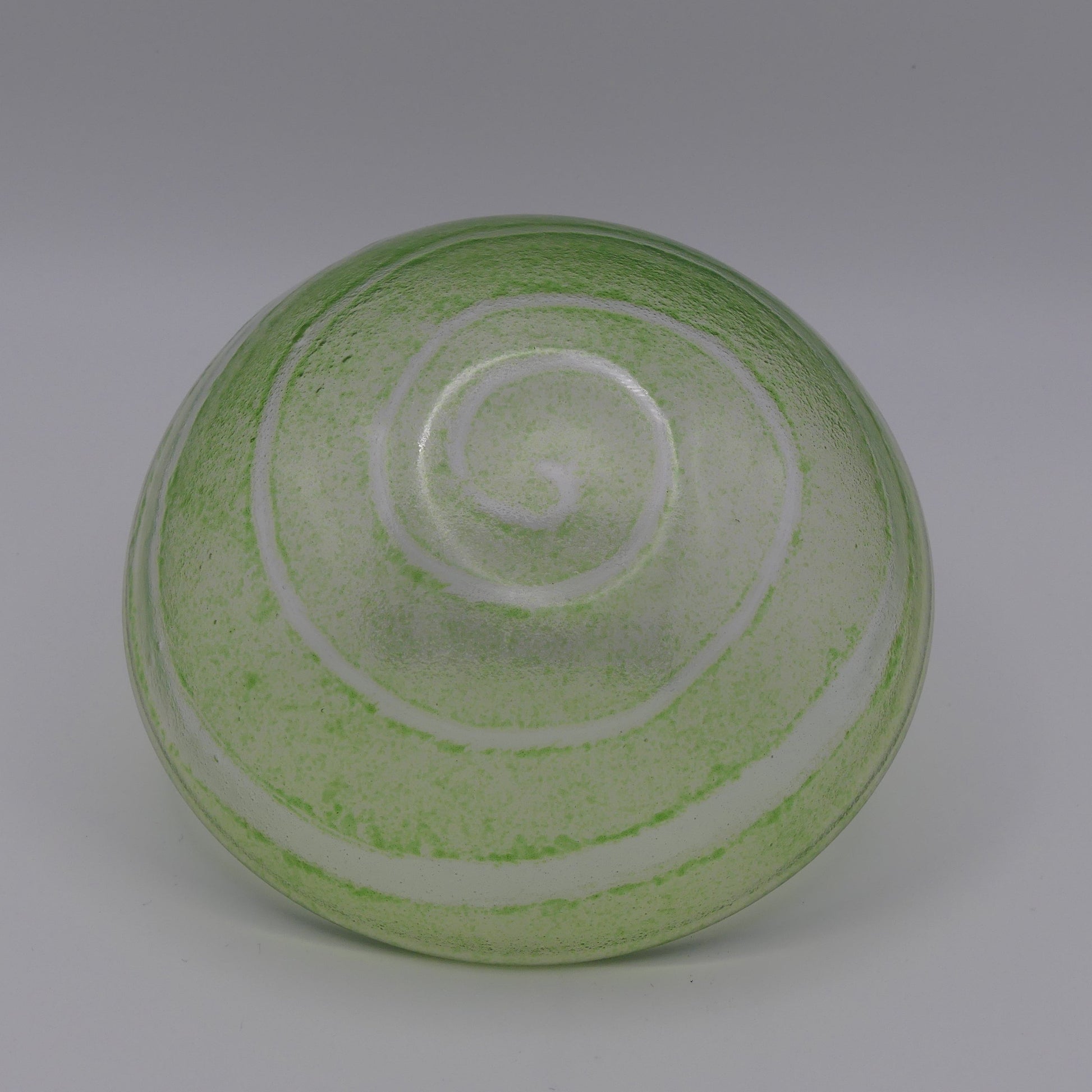 Chaque bol est réalisé à partir d’une plaque de verre, puis décoré avec des poudres de verre colorées, appliquées manuellement.