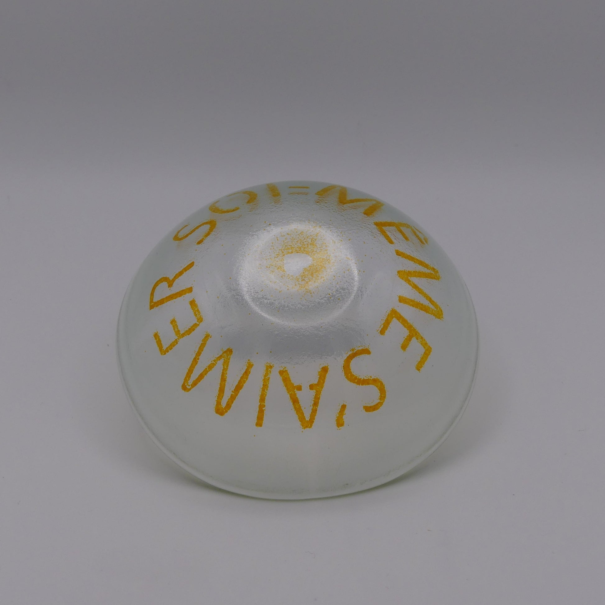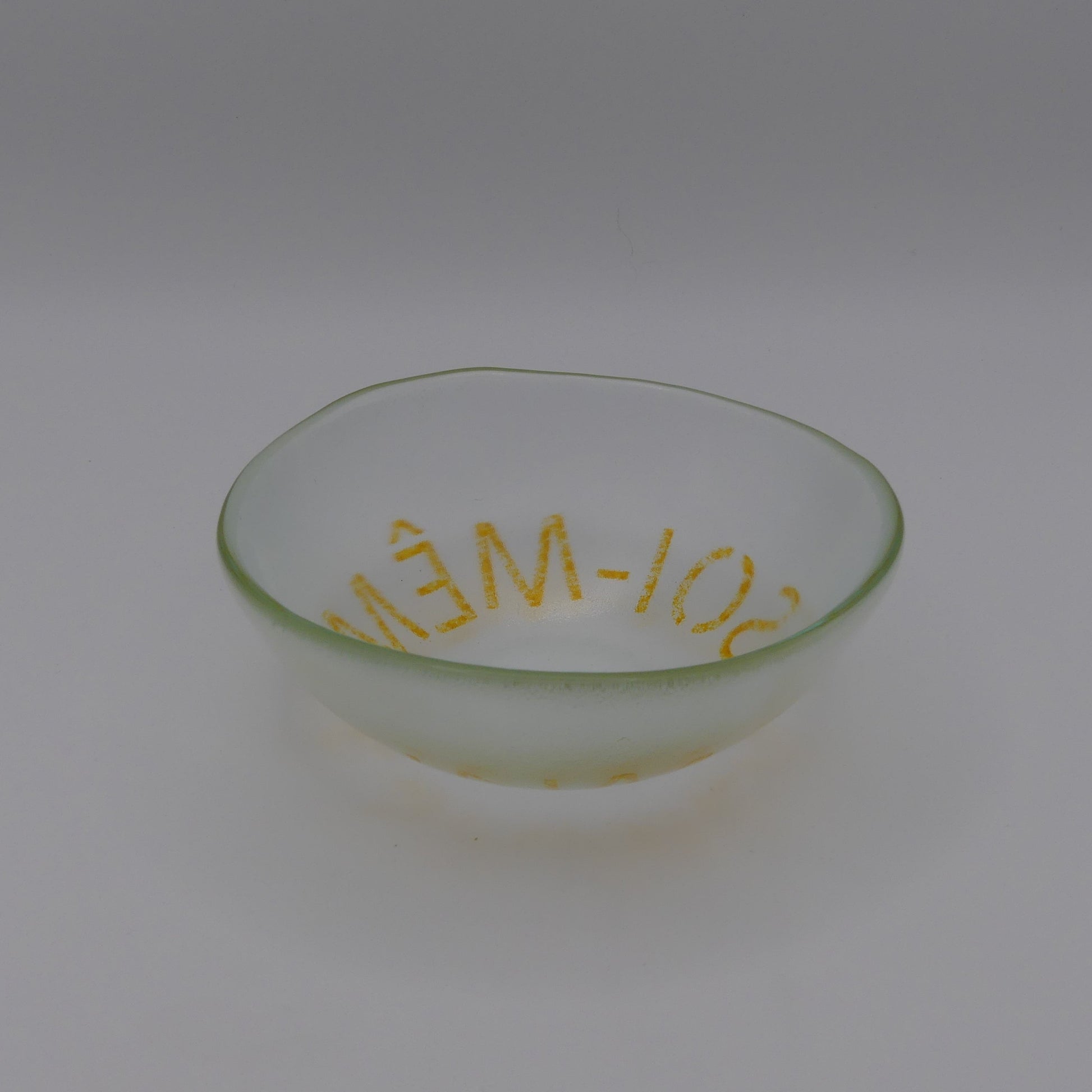 Chaque bol est réalisé à partir d’une plaque de verre, puis décoré avec des poudres de verre colorées, appliquées manuellement.
