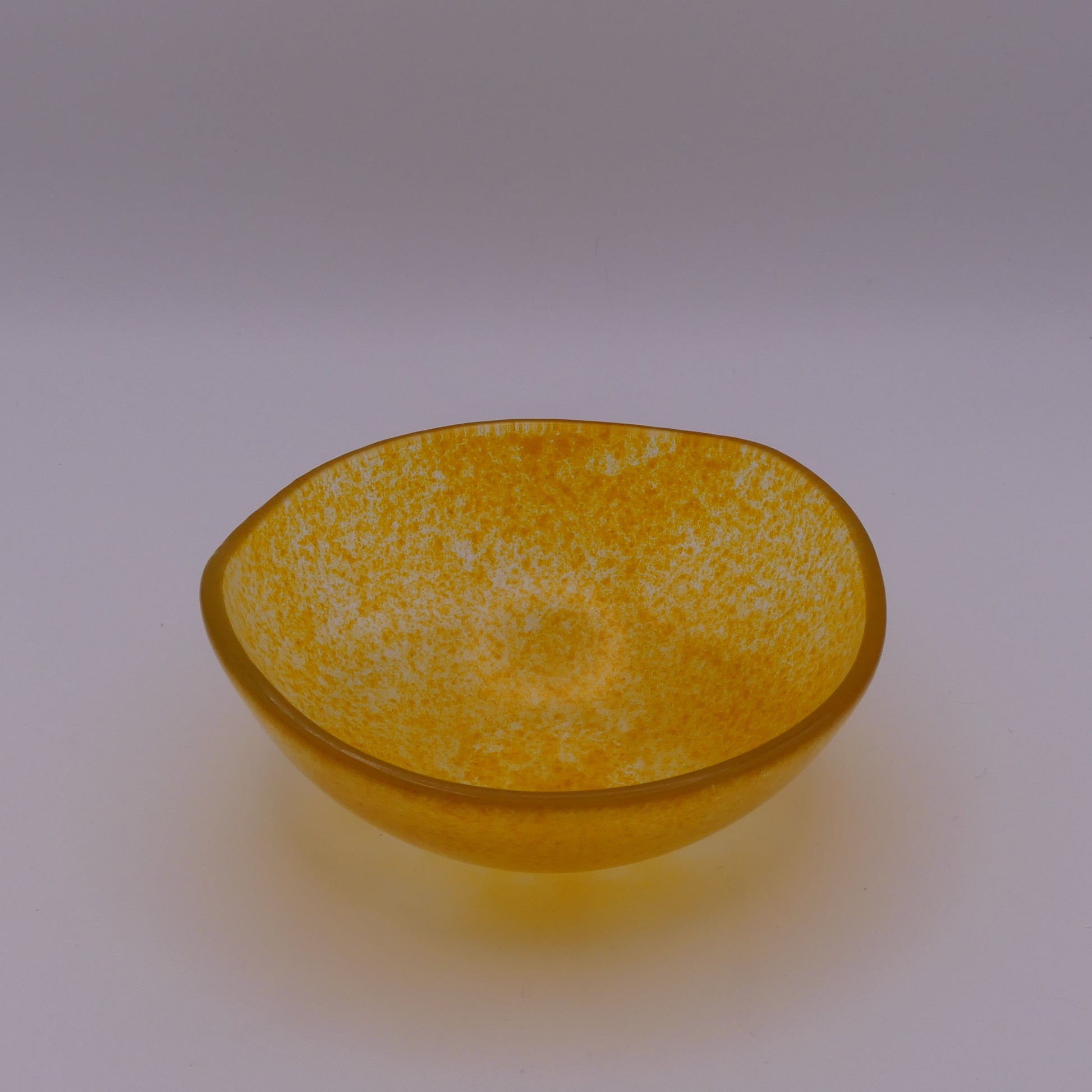 Chaque bol est réalisé à partir d’une plaque de verre, puis décoré avec des poudres de verre colorées, appliquées manuellement.
