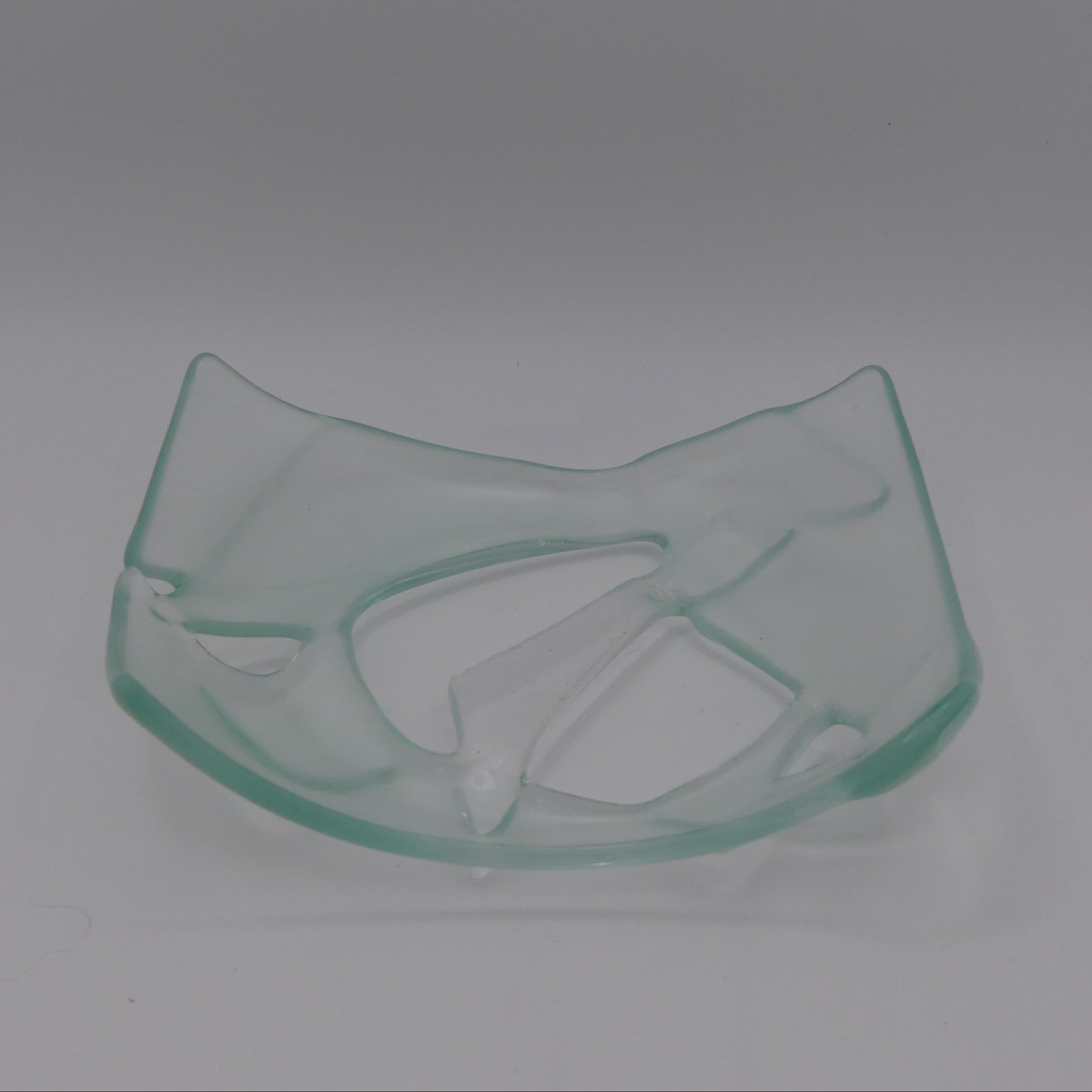 Chaque bougeoir est réalisé à partir de morceaux de plaques de verre, puis décoré avec des poudres de verre colorées, appliquées manuellement.
