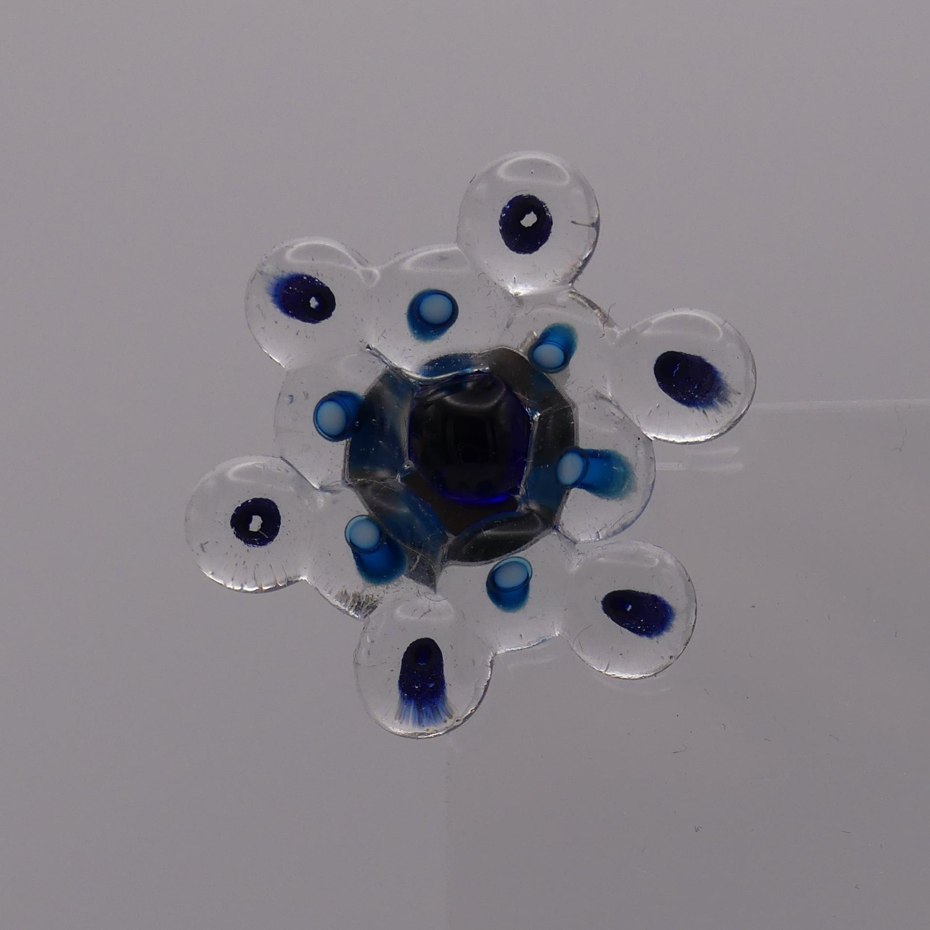Chaque broche est réalisée artisanalement à partir de baguettes de verre colorées, coupées puis travaillées à chaud.