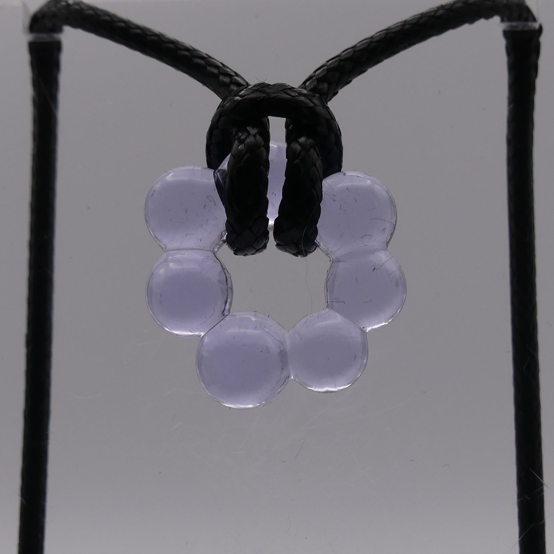 Chaque collier est réalisé à partir de baguettes de verre colorées, coupées puis travaillées à chaud.
