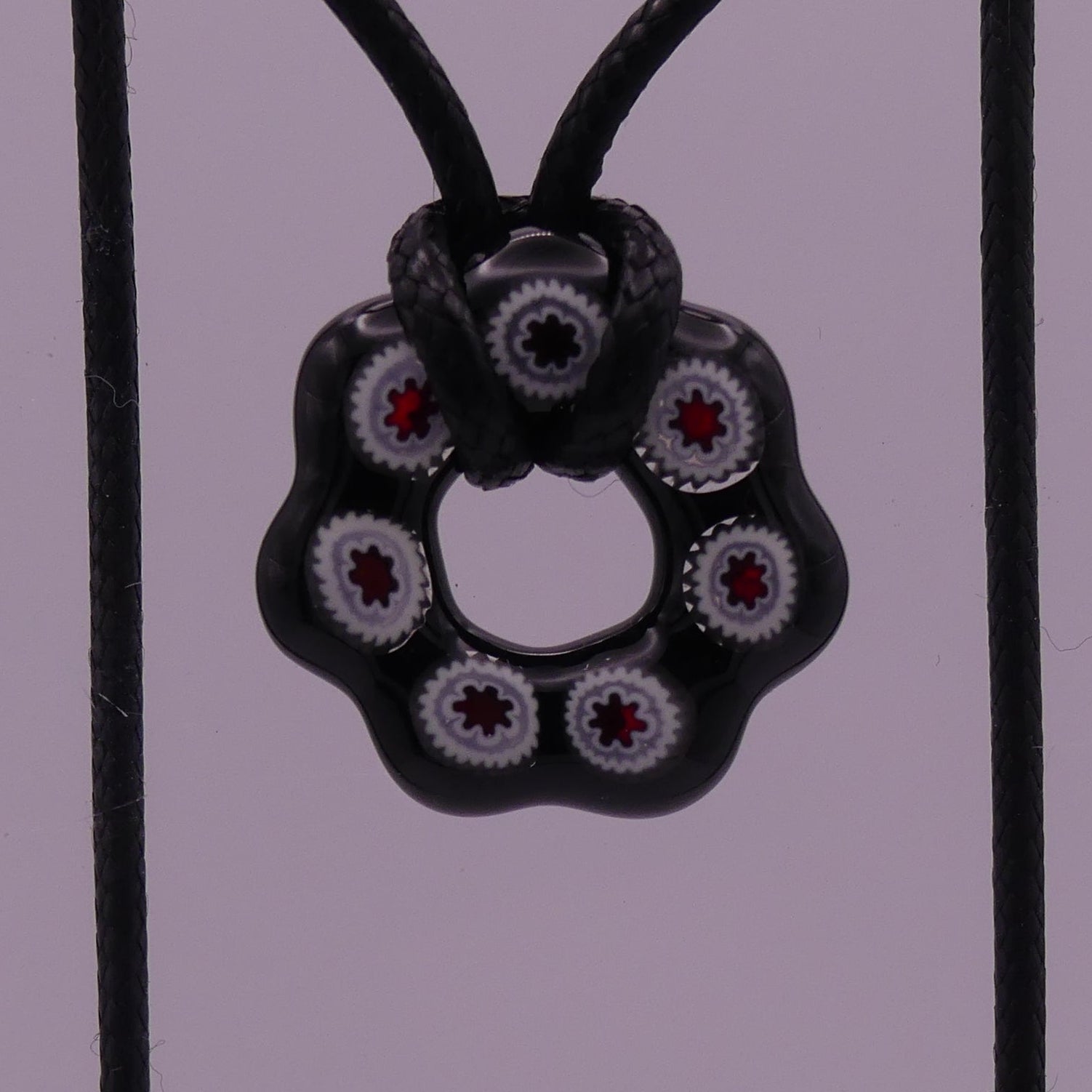 Chaque collier est réalisé à partir de baguettes de verre colorées, coupées puis travaillées à chaud.