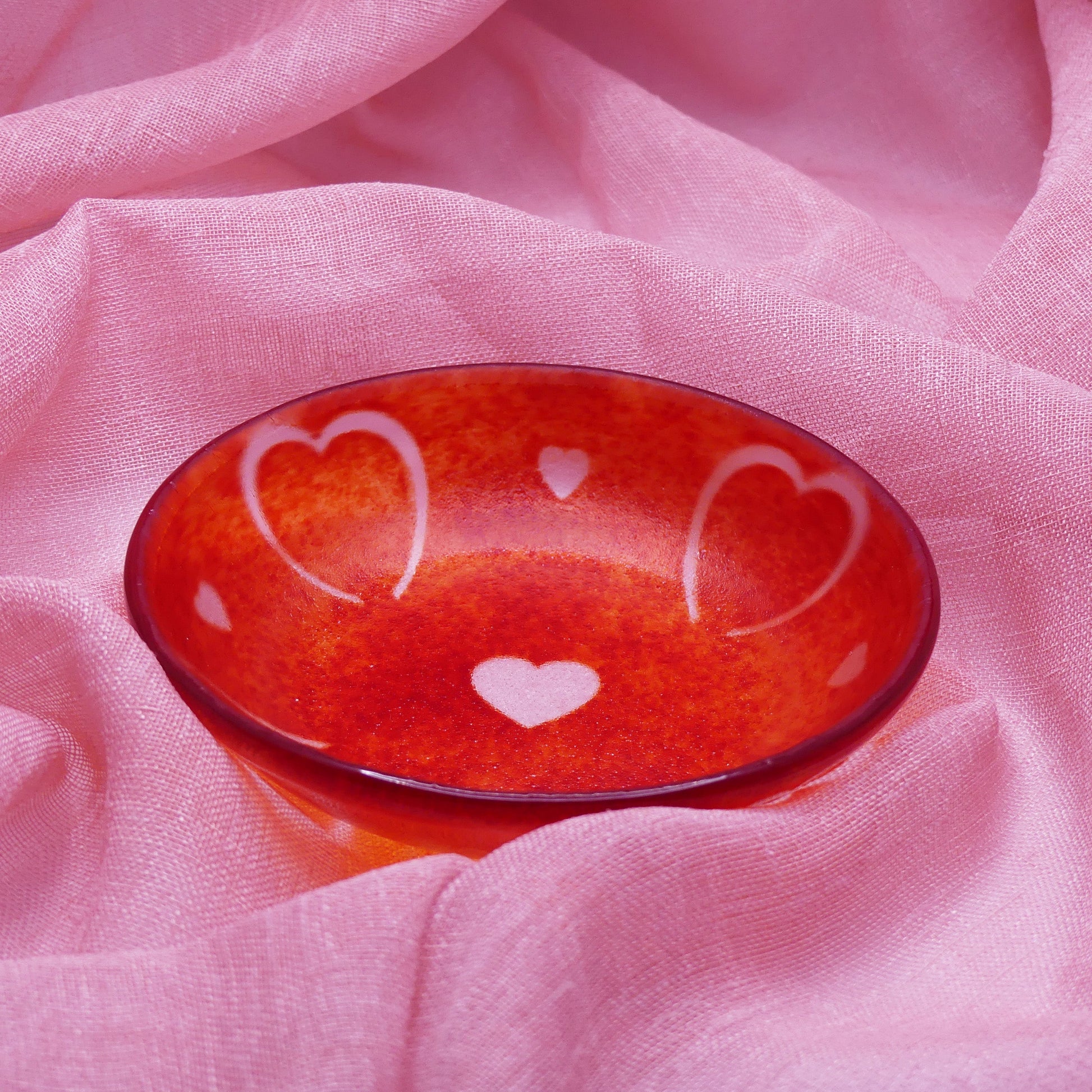 Apportez charme et romantisme à votre décoration avec cette coupelle en verre artisanal, entièrement façonnée et décorée à la main.