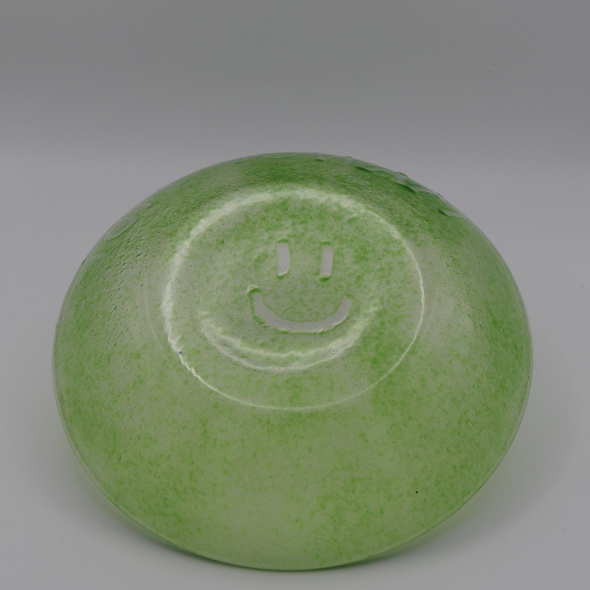 Chaque coupelle est réalisée à partir d’une plaque de verre, puis décorée avec des poudres de verre colorées, appliquées manuellement.