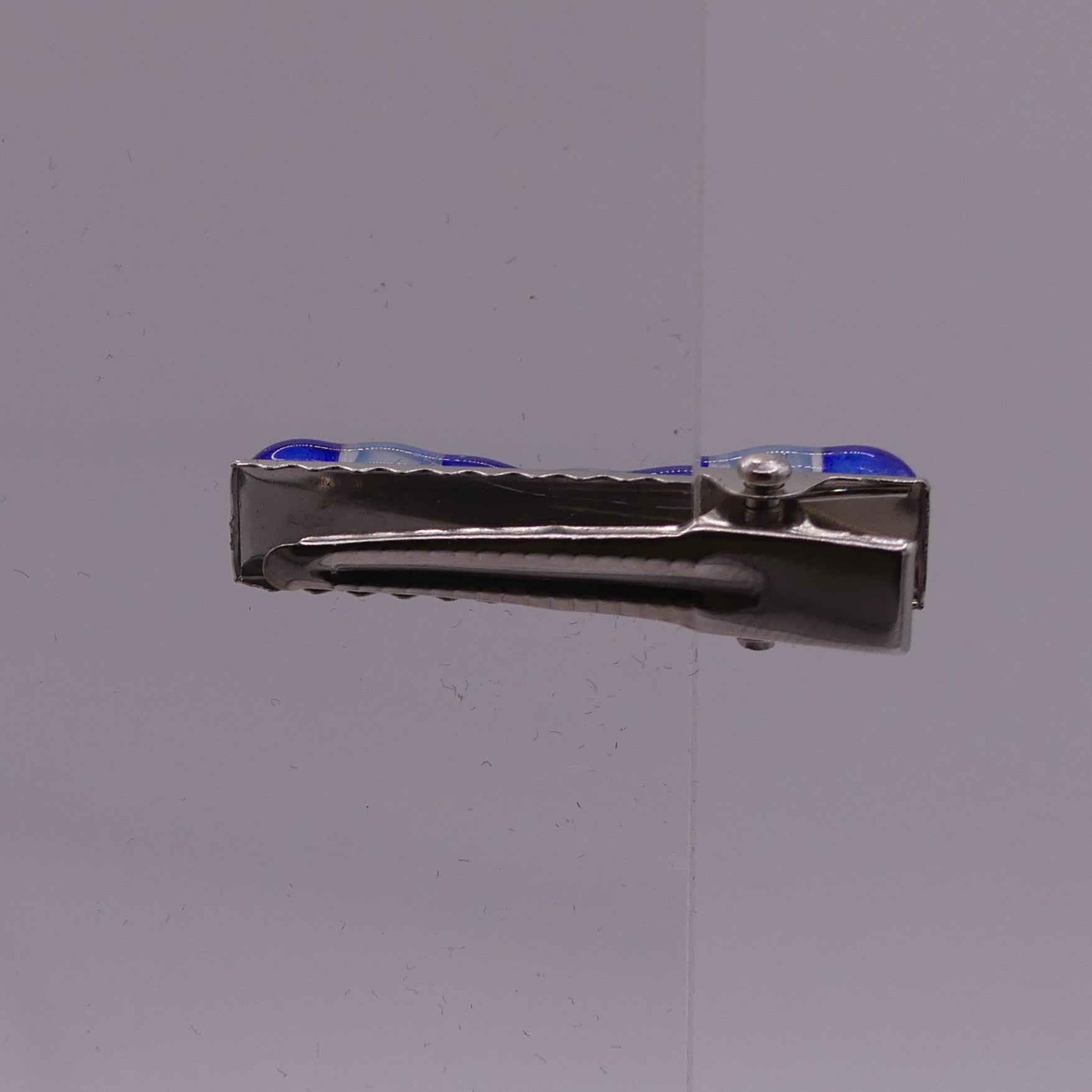 Chaque pince à cheveux est réalisée artisanalement à partir de baguettes de verre colorées, coupées puis travaillées à chaud.